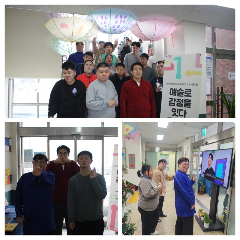 이번 전시회는 센터를 방문하는 누구나 전시된 작품과 제작된 영상을 관람하고 시청할 수 있도록 11월 27일(수) ~12월 3일(화)까지 1주일 간 진행하였고, 다양한 재료를 활용한 작품이 전시되어 있어 관람객들이 흥미를 가지고 관람하는 모습을 보였고, 방명록을 통해 응원의 메세지도 전해주어 참여자와 담당자 모두 성취감과 만족감을 느끼는 소중한 시간이었습니다.