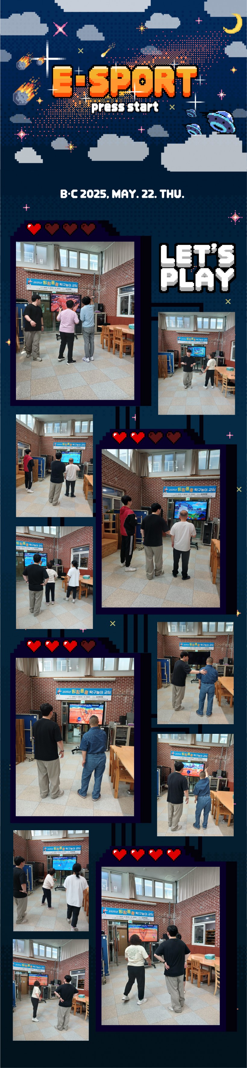 [프로그램] E-SPORTS 페이지 정보 작성자 장경수 작성일25-05-26 19:42 조회544회 댓글0건 관련링크 목록 본문 5/22일 E 스포츠 프로그램을 진행하였습니다. 테니스 게임을 하면서 재미있고 색다른 추억을 만들었습니다. 댓글목록 등록된 댓글이 없습니다. 목록