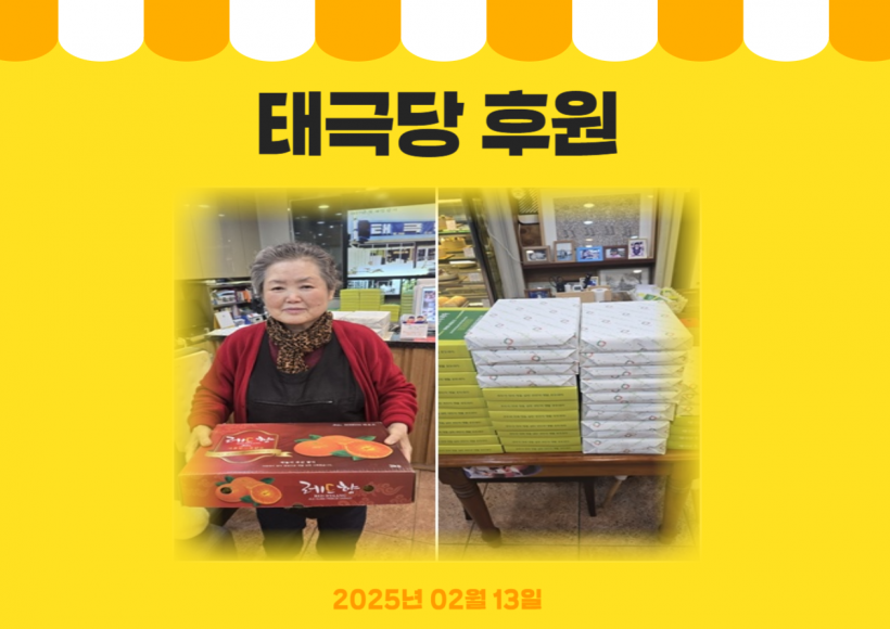 [후원] 태극당 페이지 정보 작성자 운영자 작성일25-02-13 17:09 조회562회 댓글0건 관련링크 목록 본문 매달 주기적으로 저희 죽전원 가족분들에게 맛있는 호두과자 간식을 후원해주시는태극당! 항상 감사드립니다. 댓글목록 등록된 댓글이 없습니다. 목록