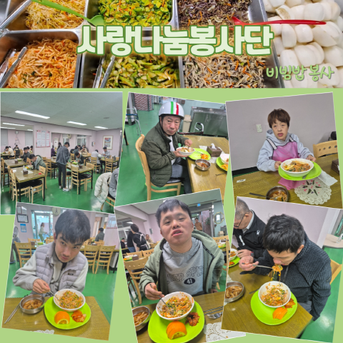 [자원봉사] 사랑나눔봉사단 페이지 정보 작성자 운영자 작성일24-12-11 16:45 조회588회 댓글0건 관련링크 목록 본문 2024. 12. 07 (토) 사랑나눔 봉사단이 월 1회 비빔밥 봉사를 위해 천안죽전원에 방문했습니다. 언제먹어도 맛있는 비빔밥!! 죽전원 가족들 모두 좋아하는 비빔밥입니다. 영양가 있고 맛있는 비빔밥을 제공해 주셔서 감사합니다. 댓글목록 등록된 댓글이 없습니다. 목록