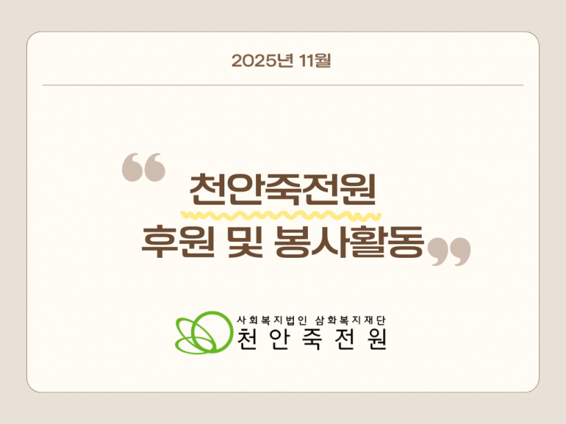 [11월] 후원 자원봉사 페이지 정보 작성자 운영자 작성일25-12-02 11:13 조회155회 댓글0건 관련링크 목록 본문 2025년 11월 후원 및 자원봉사입니다.마지막 12월 감기 조심하시고 잘 마무리 하시길 바랍니다.감사합니다. 댓글목록 등록된 댓글이 없습니다. 목록