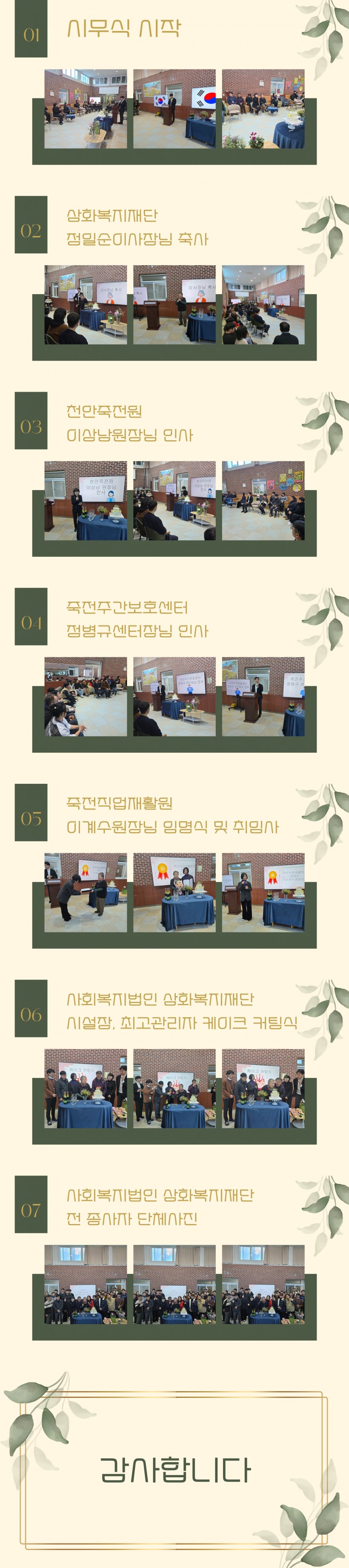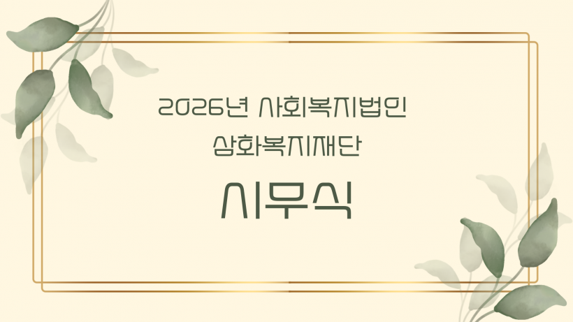 2026년 사회복지법인 삼화복지재단 시무식 페이지 정보 작성자 운영자 작성일26-01-02 17:56 조회156회 댓글0건 관련링크 목록 본문 2026년 사회복지법인 삼화복지재단 시무식 진행하였습니다.2025년 잘 마무리 진행하였고 새롭게 2026년 시작하였습니다.2025년에 사랑과 나눔, 후원, 봉사를 진행해주신 모든 분들께 감사드리며 2026년에도 잘 부탁드립니다.새해 복 많이 받으세요! 댓글목록 등록된 댓글이 없습니다. 목록